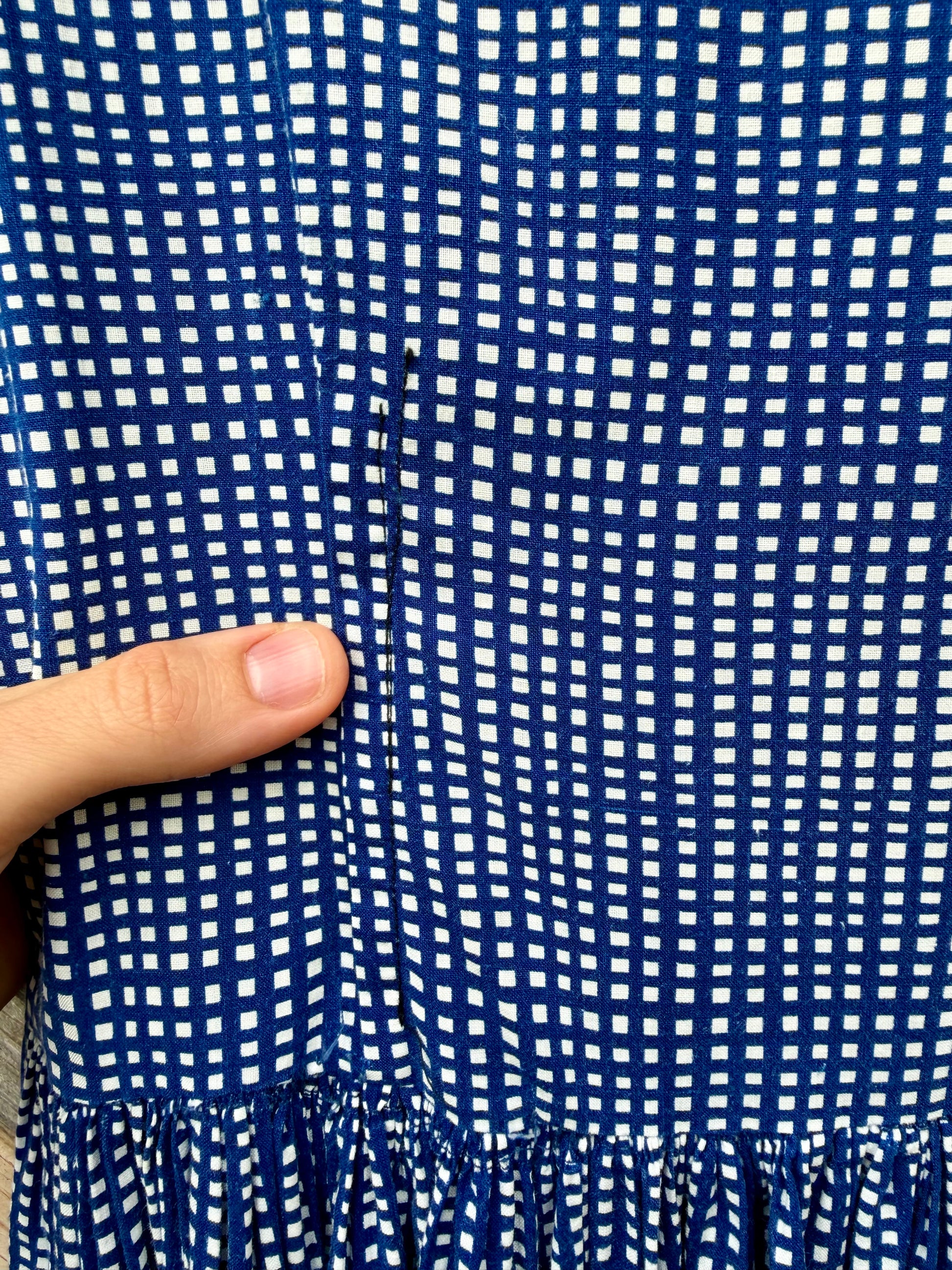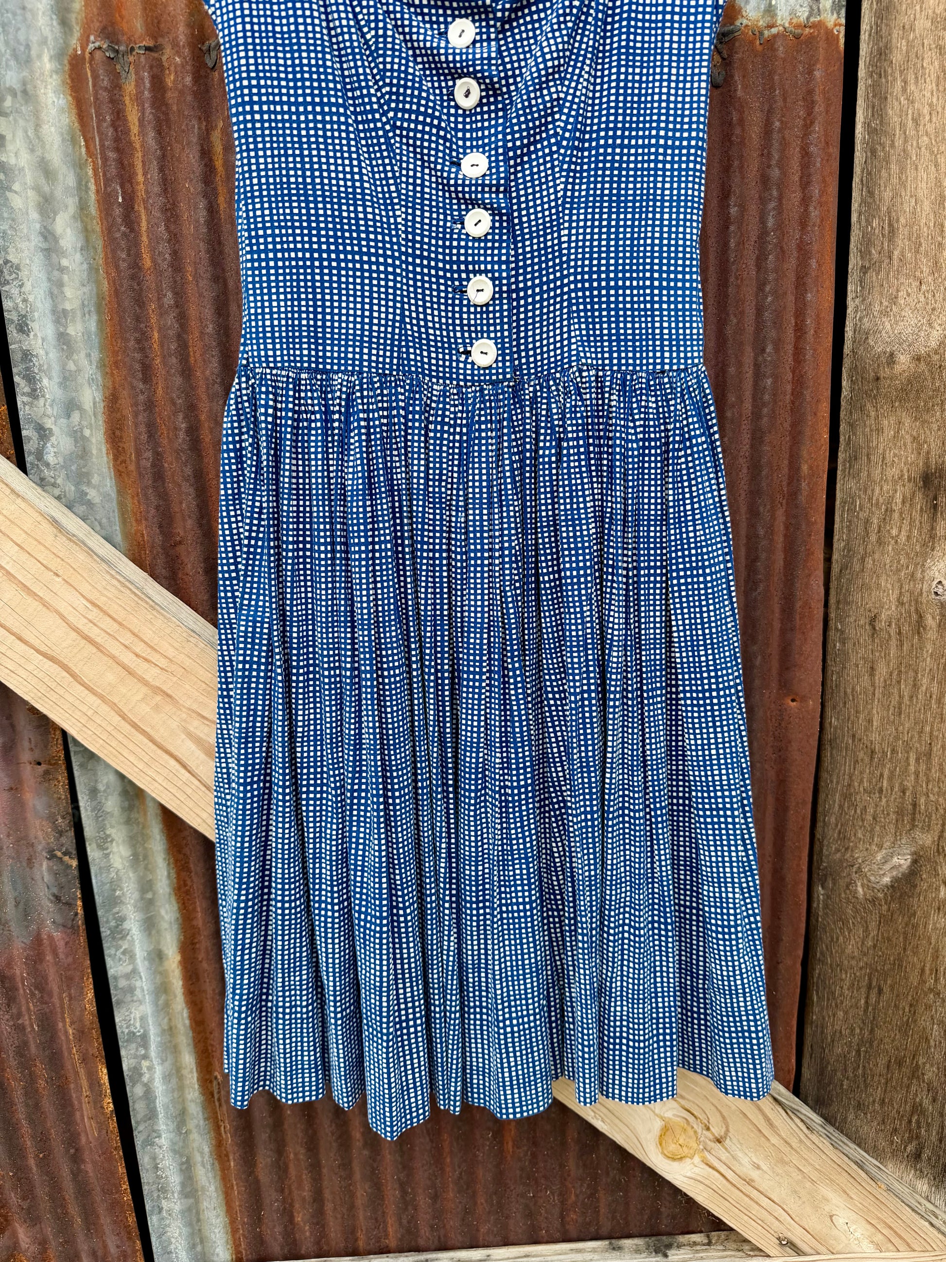 Absolutely stunning handmade dress in a blue and white gingham pattern. Button down bodice.