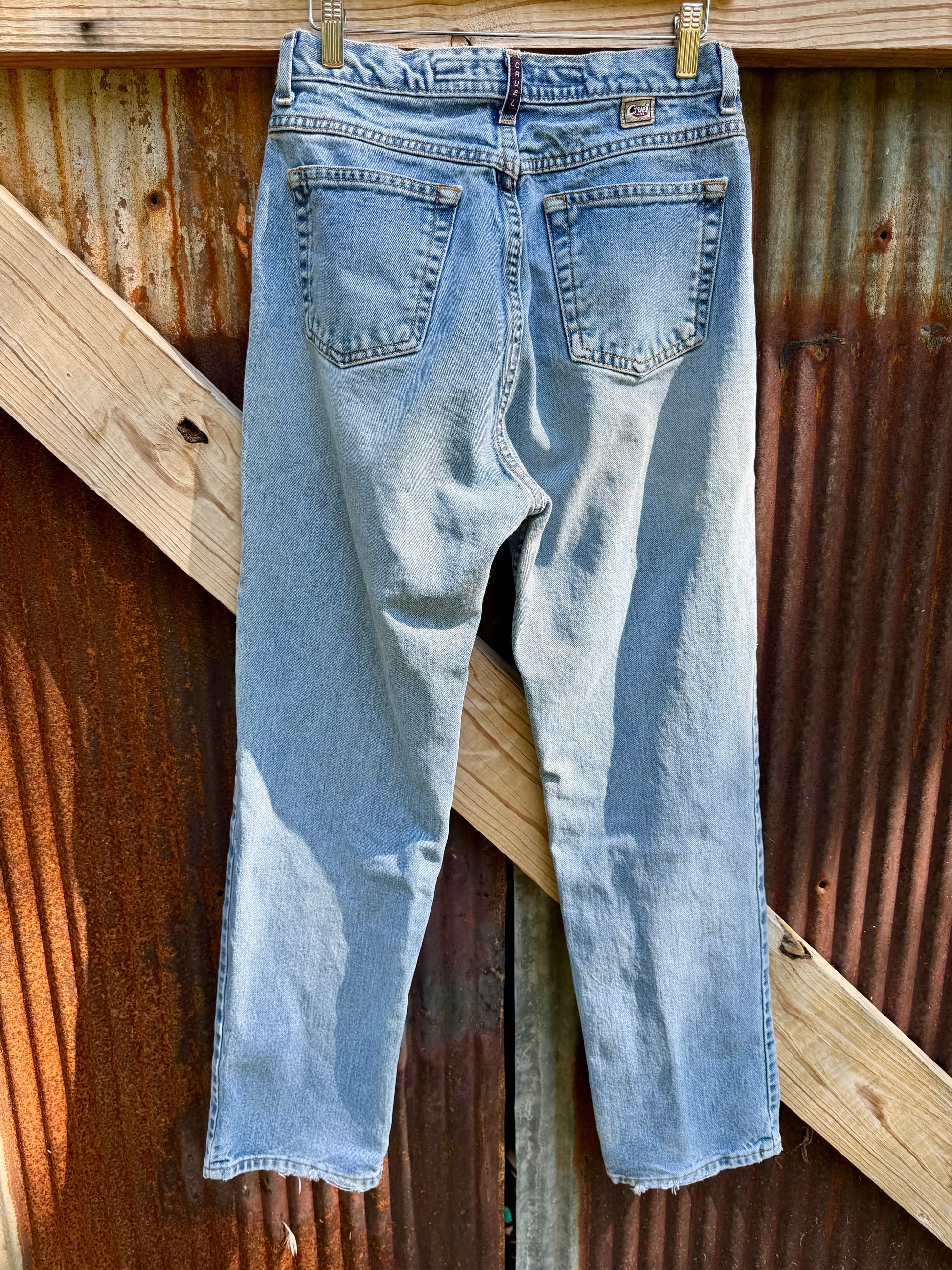 1990s medium wash Cruel girl jeans. Slim fit style. Perfectly imperfect and worn in.