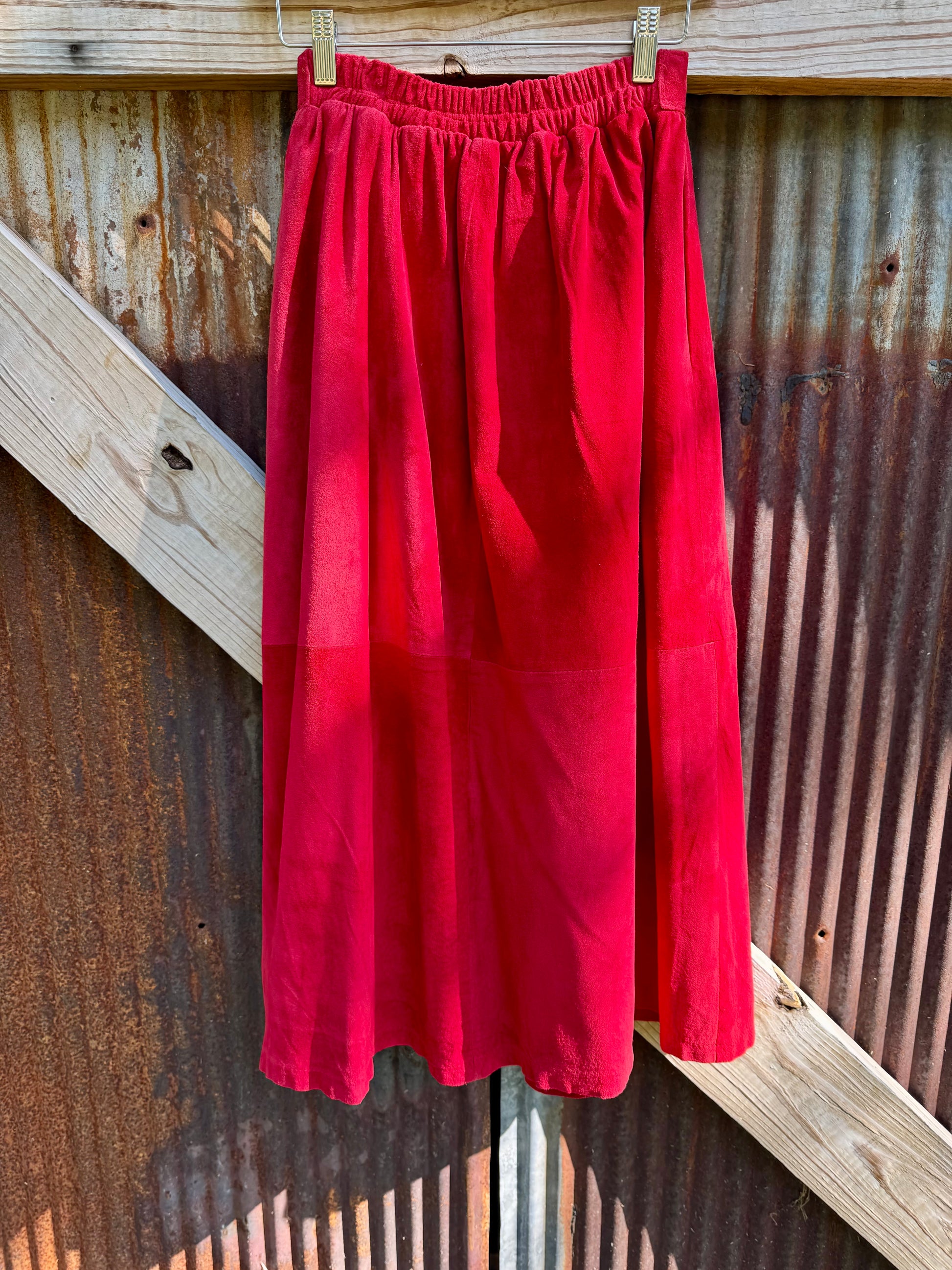 Insane 1980s block suede skirt by Saint-Malo. Has a slight fade down the left side for character. Still so much life left & truly adds to the charm! Button down front closure, elastic back waist & buttery soft. oh yes! And pockets.