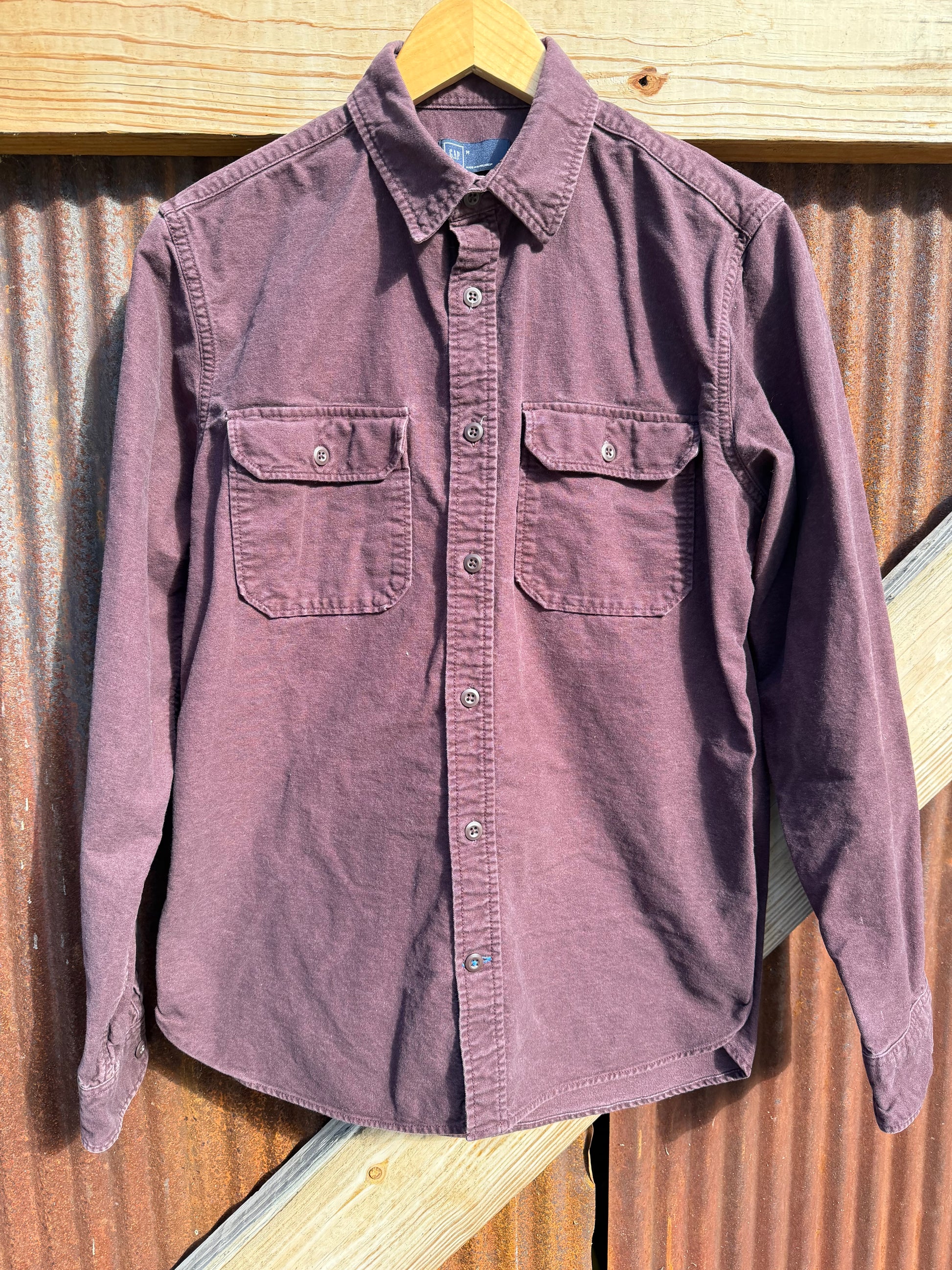 Gorgeous plum Buttondown by Gap. 100% cotton. Last button has been mended in a blue as shown in photos. Exceptional color that isn't done justice in photos.