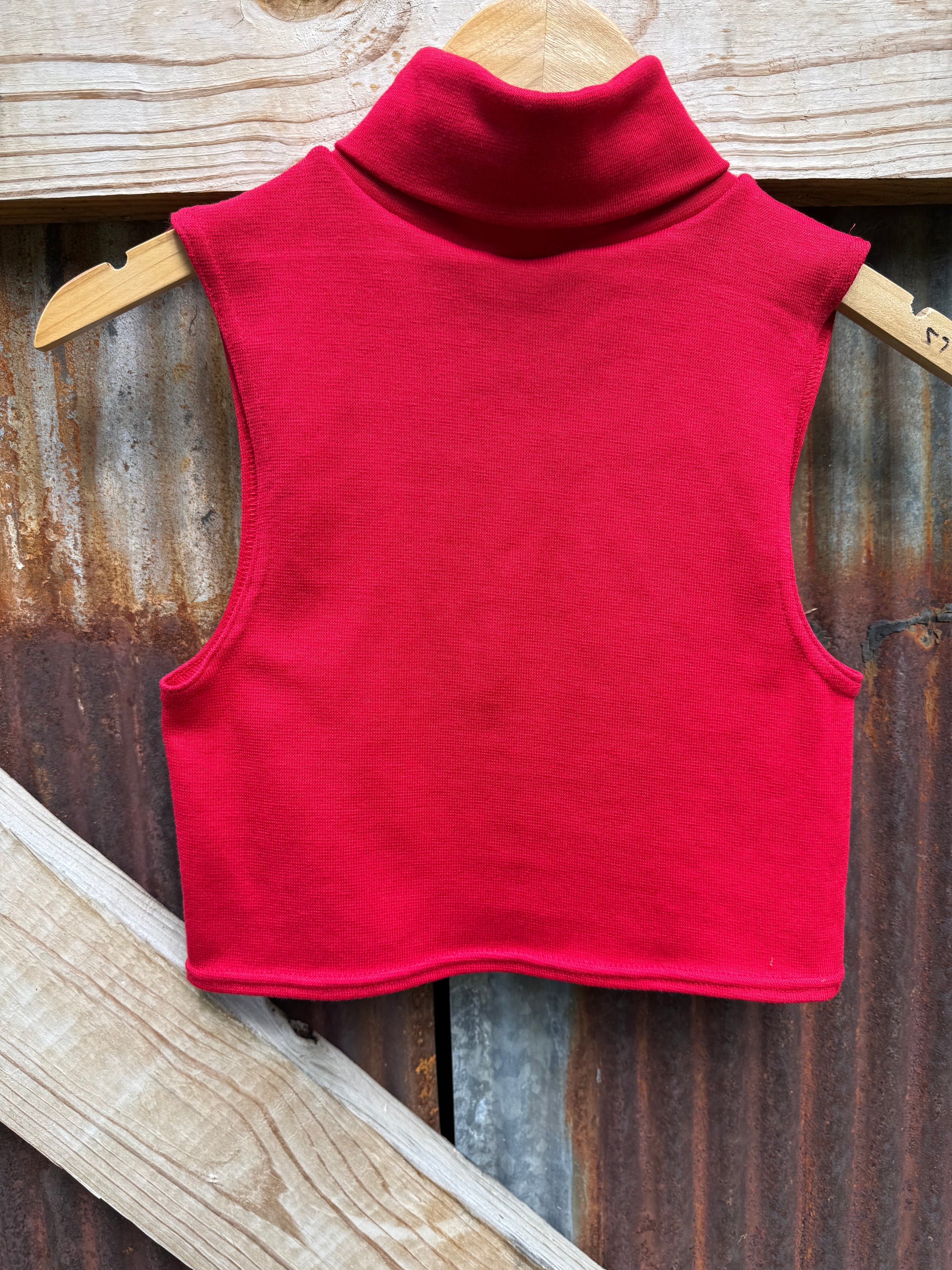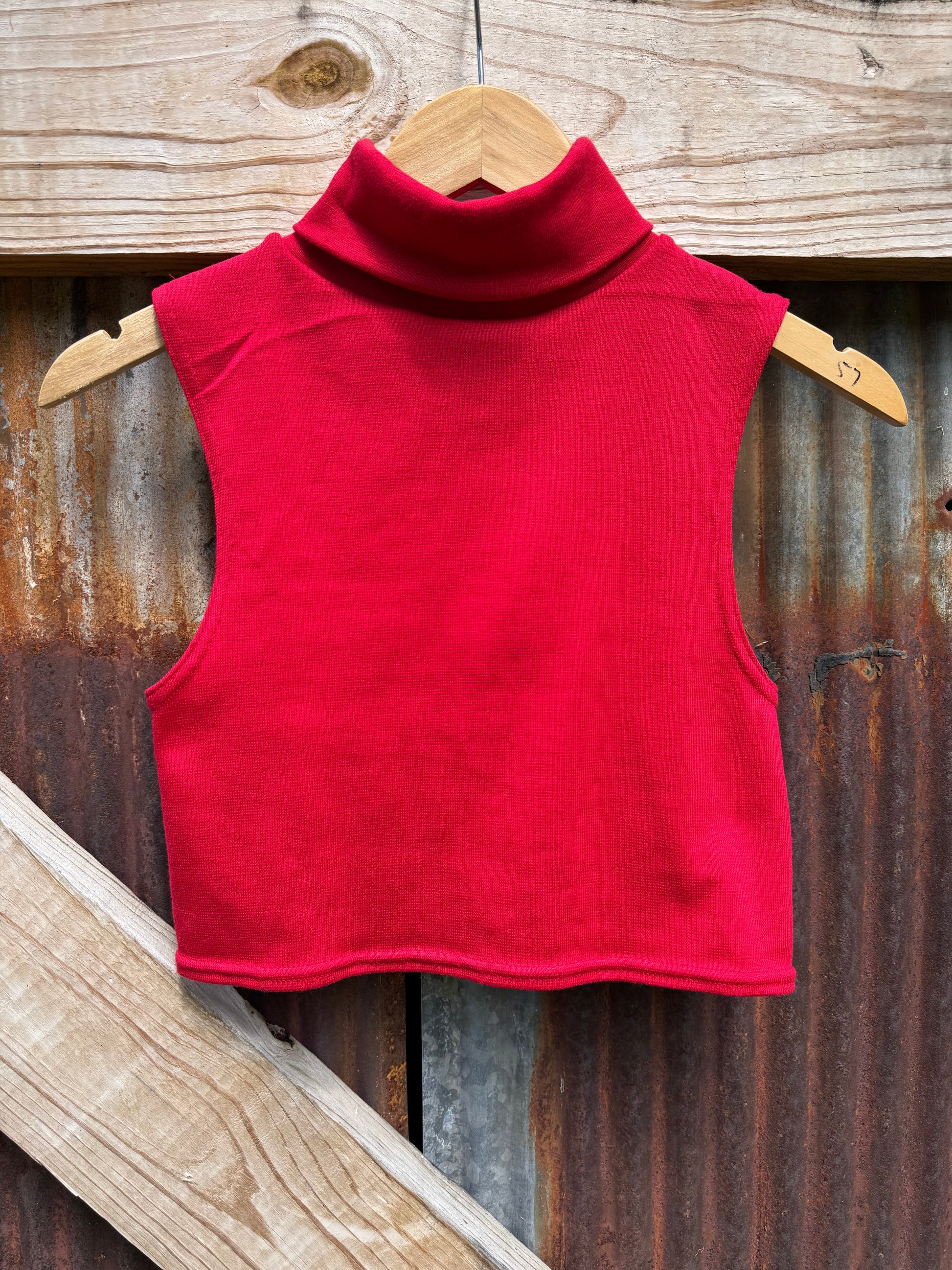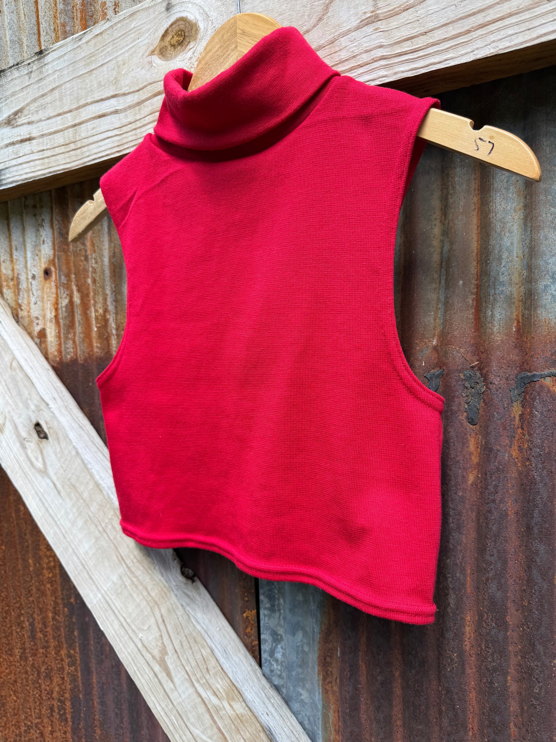 Candy apple red 90s crop turtleneck by White Stag. A classic Shania look from the 90s. Made in the USA 97% acrylic, 3% spandex